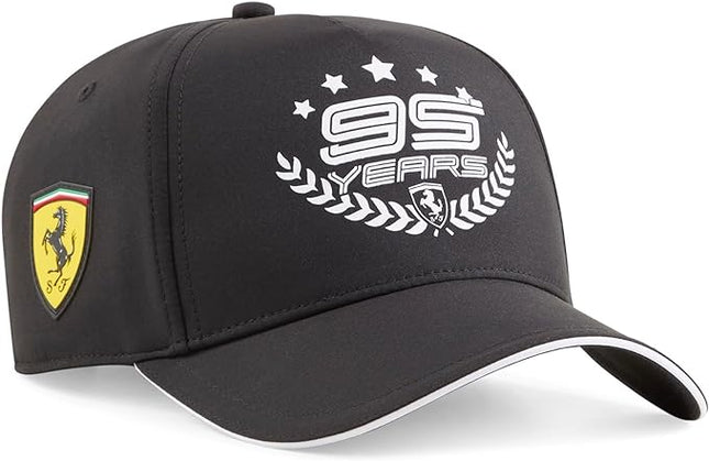 This PUMA Scuderia Ferrari cap celebrates 95 years of the famous racing team, thanks to the motorsport inspired '95 years' design on the front, complimented by further Scuderia Ferrari 'SF' logos on the side, and the PUMA logo on the rear.