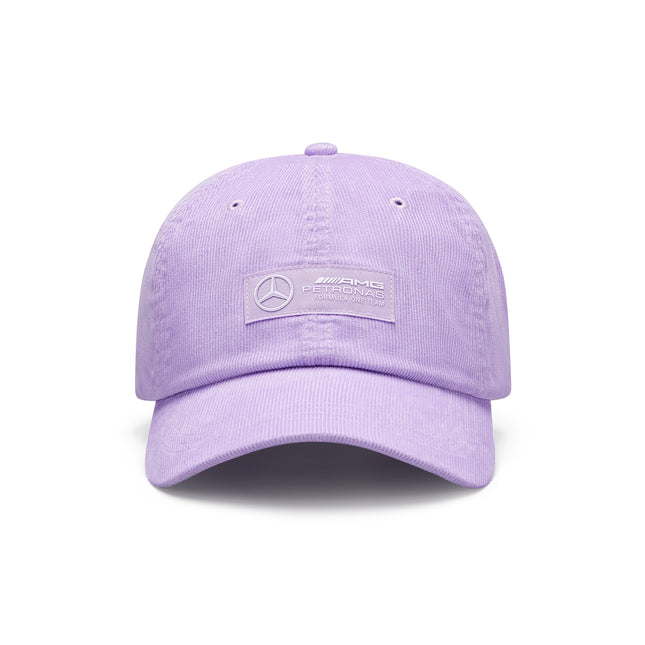 A special anniversary edition of the official 2024 Replica Team Cap, featuring the same tonal hexagon print seen throughout the 2024 team collection, alongside a precision embroidered Mercedes logo and 'Petronas 50 Years' print on the peak.