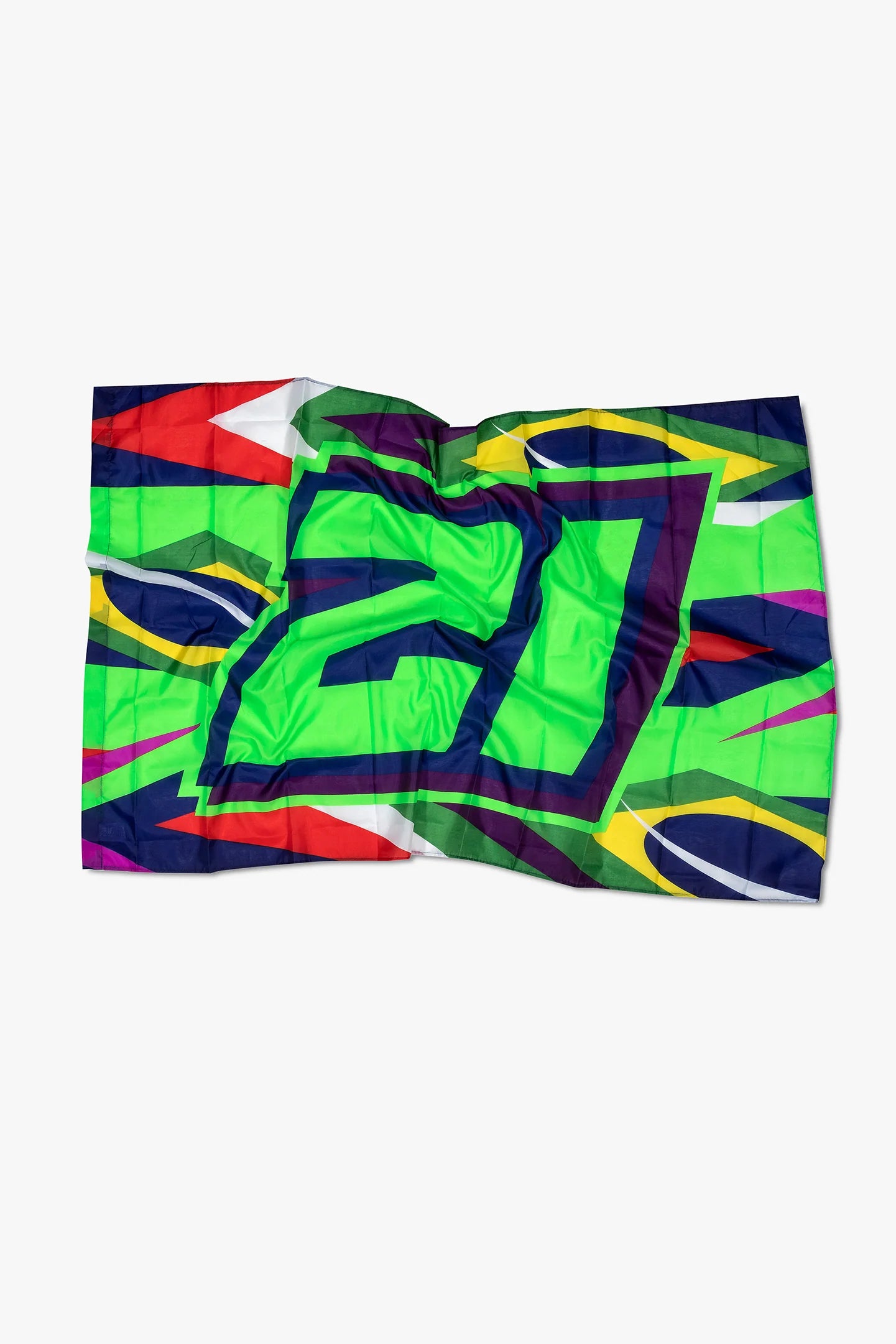 Polyester flag from the Franco Morbidelli collection depicting a large number 21 and the pattern of the Brazilian and Italian... Read more